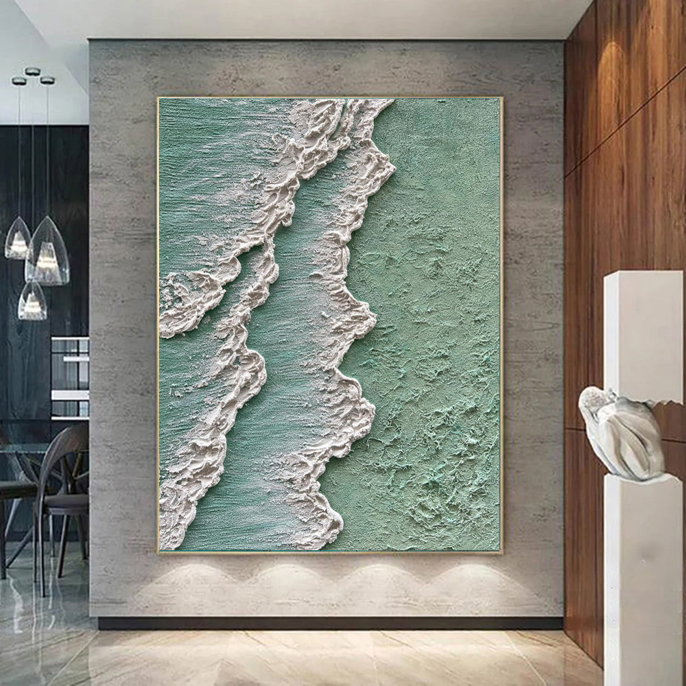 Ocean Waves Abstract Textured Thick Oil Painting Hand Painted Green And White Cream Style Texture Canvas Art Wabi Sabi Painting Waves Art Decor