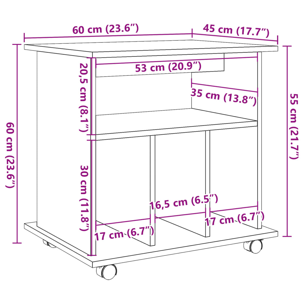 Skåp Med Hjul 60X45X60 Cm Konstruerat Trä